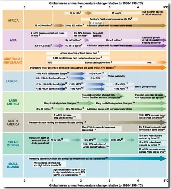 BishopHill has a screen shot of Climate change impacts for the new IPCC report. He notes the similarity to the AR4.
