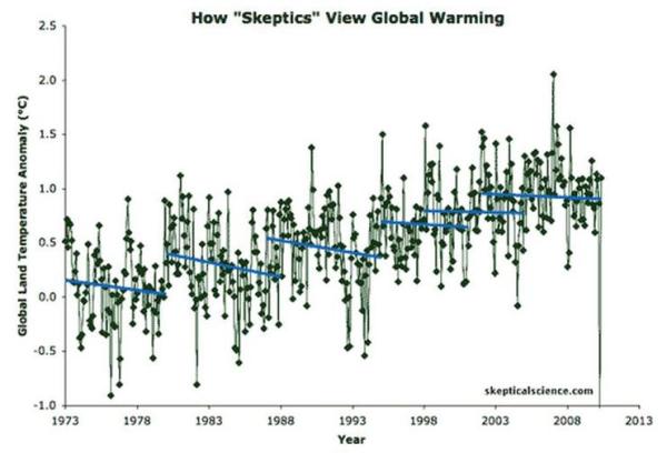 Popper was concerned with hypothesis testing, whilst we are concerned here with accurate projections about states well into the future. However, the same principles apply. We should search for the truth, by looking for mistakes and (in the context of projections) inaccurate perceptions as well. However, this is not to be dismissive of uncertainties. If future climate catastrophe is the true future scenario, the evidence, or signal, will be weak amongst historical data where natural climate variability is quite large. This is illustrated in the graphic below.