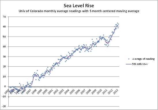 To probe further, I downloaded the sea level data figures from the University of Colorado.