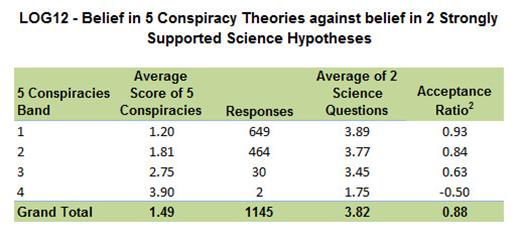 In “The Role of Conspiracist Ideation and Worldviews in Predicting Rejection of Science” (hereafter LOG13 (US survey)), they say