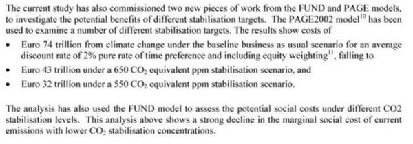 Further the figures are contradicted by the Stern Review of 2006, which was widely quoted in the UNIPCC AR4. In the summary of conclusions, Stern stated.