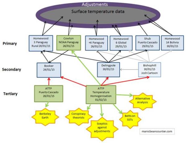In early February, RealClimate – the blog of the climate science consensus – had an article attacking Christopher Booker in the Telegraph. It had strong similarities the methods used by anonymous blogger ….andthentheresphysics. In a previous post I provided a diagram to illustrate ATTP’s methods.