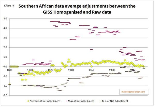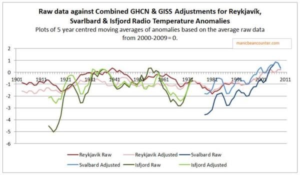 - However, compared to the raw data, the author’s adjustments, based on local knowledge were smaller than GISS, showing the GISS adjustments to be unjustified. But the adjustments bring the massive warming trend into line with (the still large) Reykjavik trend.