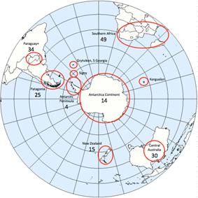 Figure 5. Euan Mearns says of the above “S Hemisphere map showing the distribution of areas sampled. These have in general been chosen to avoid large centres of human population and prosperity.”