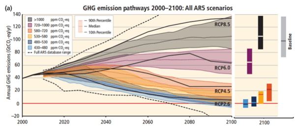 The non-fossil fuel emissions are a bit more problematic to work out. In 2005 the baseline estimate is 81% of 18005 is 1458. It is only a vague estimate, so round it down to 1450 and then assume it is constant for the Business as Usual (BAU) scenario.