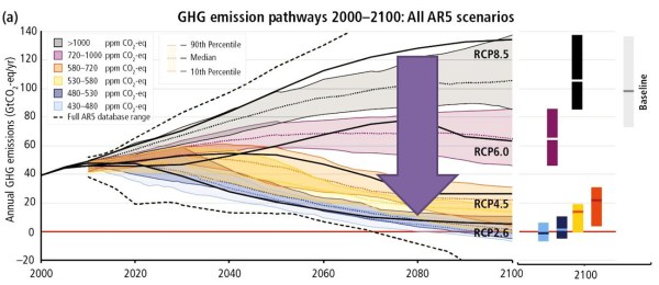 The difference Donald Trump will make is somewhere in the thickness of the thick yellow line. There is no prospect of the aimed-for blue emissions pathways. No amount of ranting or protests at the President-elect Trump will change the insignificant difference the United States will make with any politically-acceptable and workable set of policies, nor can make in a country with less than a twentieth of the global population and less that one seventh of global emissions.