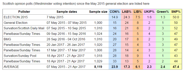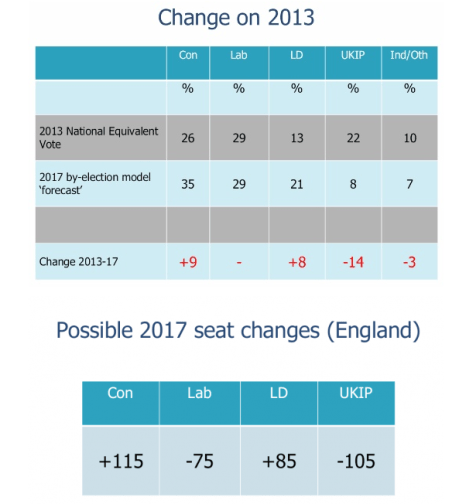 The impact of the snap General Election is likely to reinforce the dramatic exchange of seats that I forecast, with the additional impacts of (a) confirming the collapse in UKIP support; (b) highlighting the re-emergence of the Liberal Democrats as the major alternative to the Conservatives in much of England; and (c) providing a signal that the peak SNP dominance in Scotland has passed.