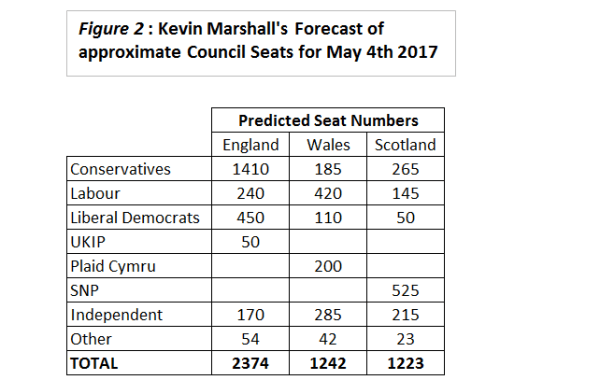 Before looking at the likely consequences for the General Election, I have shown the approximate forecast council seat numbers in figure 2.