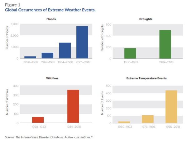Fig 1 – Global Occurrences of Extreme Weather Events from New Economy Climate Report
