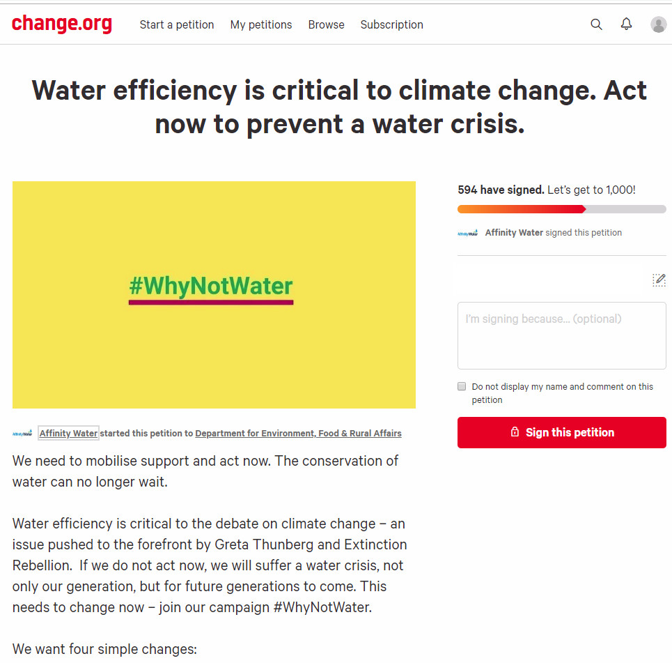 Water efficiency is critical to the debate on climate change – an issue pushed to the forefront by Greta Thunberg and Extinction Rebellion. If we do not act now, we will suffer a water crisis, not only our generation, but for future generations to come. This needs to change now – join our campaign #WhyNotWater.