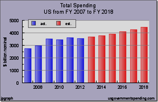 The theoretical impact of increasing government expenditure on total output, when the economy is at less than full employment, is Y/G. If government expenditure is 10% of national income, then increase G by $1 and Y will increase by $10. If government expenditure is 40% of national income, then increase G by $1 and Y will increase by $2.50. However, crudely put, if the government expenditure does not take up the slack in the economy (the deficit in aggregate demand), then (in an inflation-free economy) the government expenditure “crowds out” private expenditure. Another way of putting the situation, if the economy is not “stuck in a rut” as Keynes assumed in his “General Theory”, but merely reacting to overinvestment (such as a housing bubble), then increased government expenditure will have no effect on total output, but “crowd out” other expenditure. It will also add to the nominal national debt, without adding to total national income, thereby increasing national debt as a percentage of national income, or expanding national income leading to increased tax revenues and thus closing the deficit.
